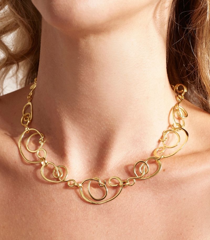 Colar em prata de lei 925 com banho vermeil ouro 18k Medidas: Peso: 26.2 g Largura: 48,5 cm Parte I – Súplicas a Hera Calisto caiu apoiada nas mãos e nos joelhos. Tentou estender os braços numa súplica: eles já começavam a se cobrir de pêlos. Calisto deplorou seu destino e mantinha-se tão ereta quanto podia