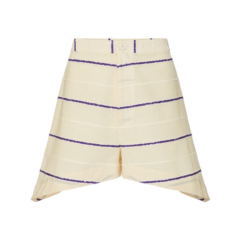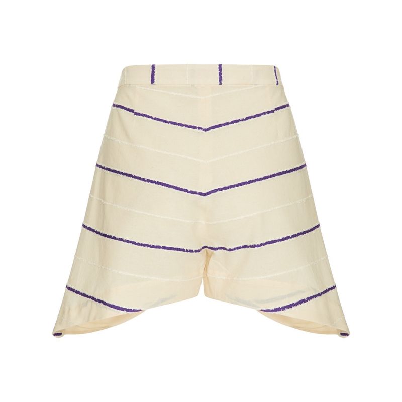 O tecido em listras off white e roxas traz uma pegada náutica atualizada, garantindo frescor e versatilidade. Perfeito para composições casuais cheias de personalidade, é um shorts pensado para quem busca estar bonita, estilosa e confortável ao mesmo tempo.