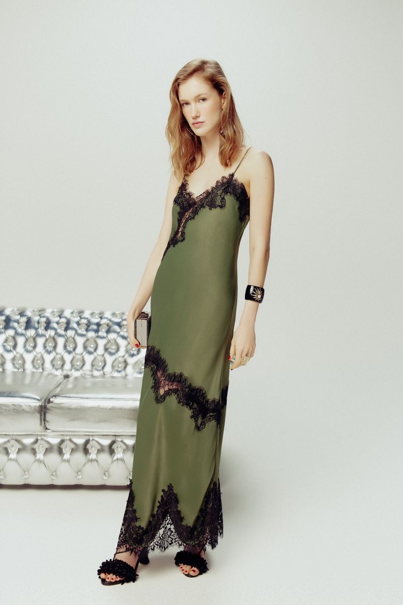 Com comprimento midi e aplicação de rendas sobre tecido de viscose acetinada, o vestido Adriana traz uma mistura de jovialidade, modernidade e feminilidade. A modelagem apresenta uma silhueta reta com aplicação de rendas no decote, corpo e barra. A renda vazada no corpo traz uma leve transparência para a peça.